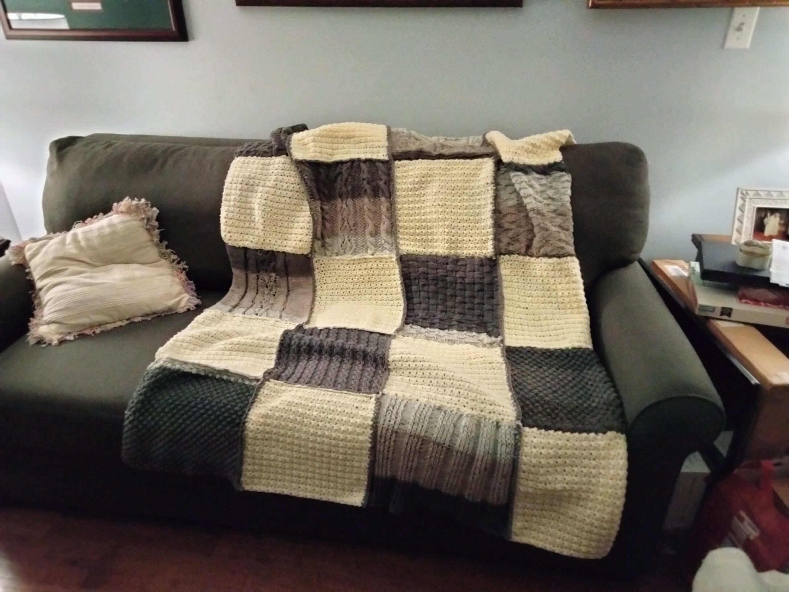 This afghan took a lot of work; more than what is usual for an afghan. That’s because it’s made in blocks. There were 20 blocks to this afghan.