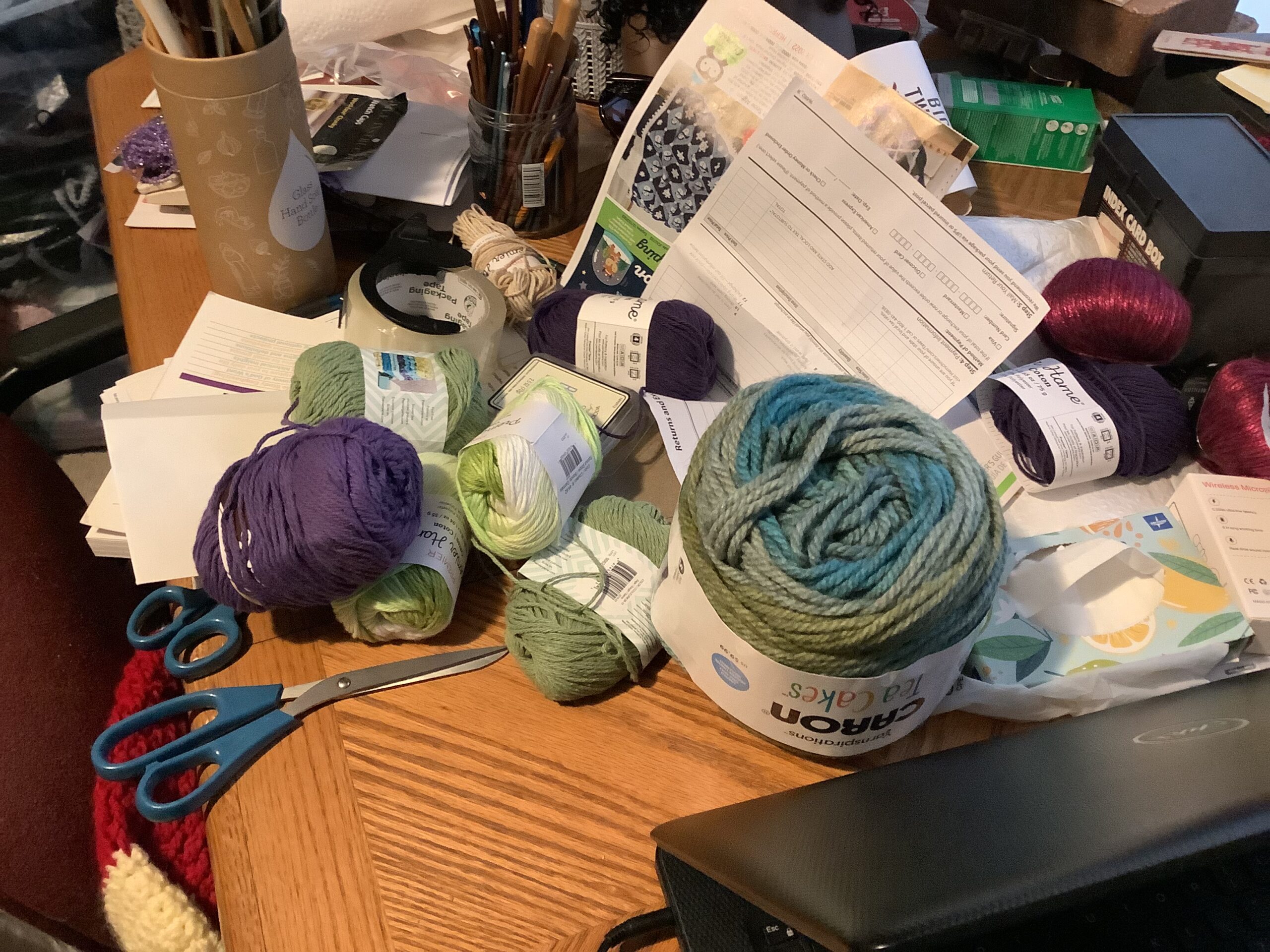 The first thing is to decide what to make or decide what yarn you want to use. Sometimes I start with the item I want to make and sometimes I’m itching to get my hands on a particular yarn. Those are always the first two steps and that means I have to raid my yarn stash.