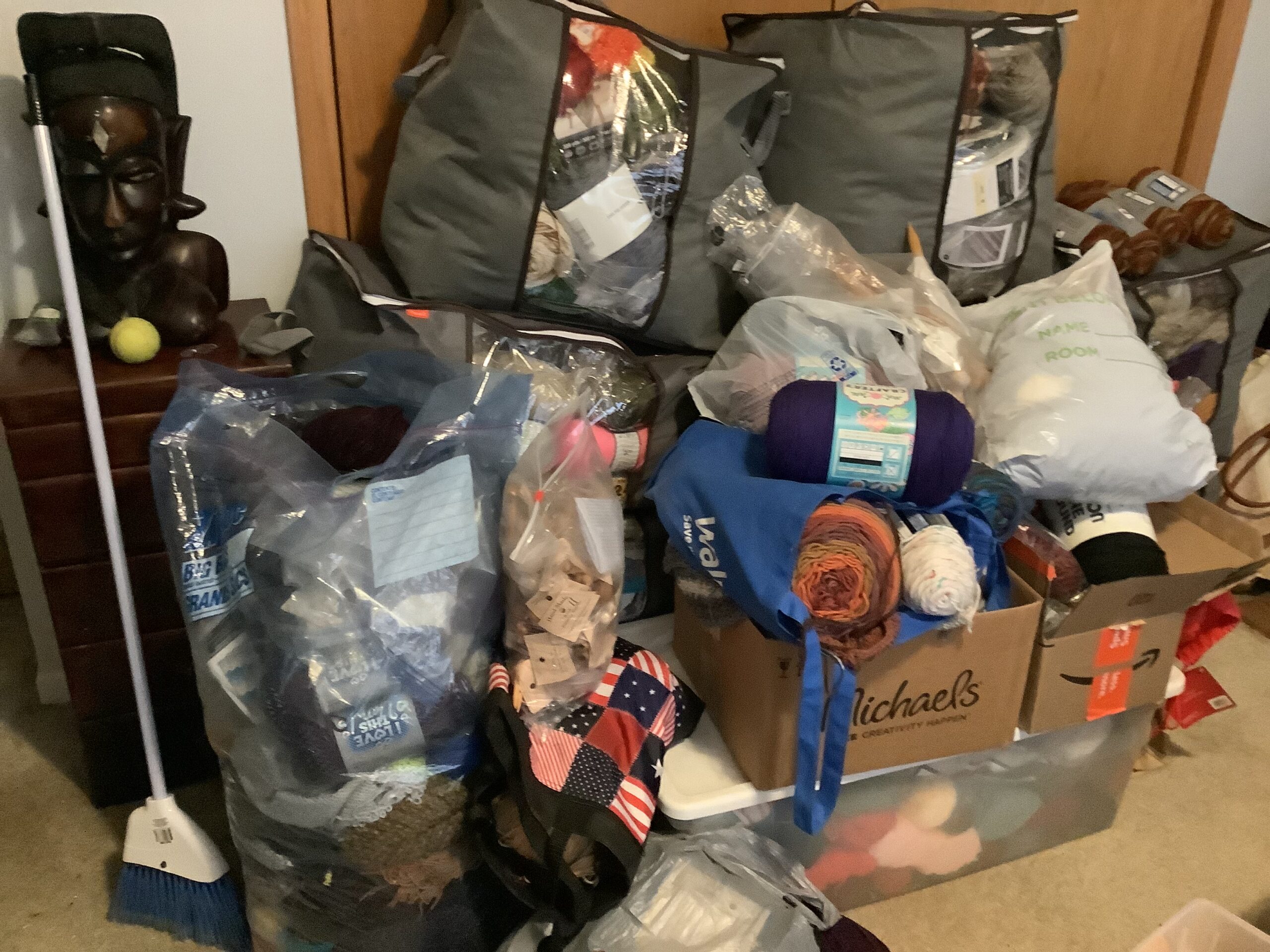 This wasn’t exactly the change I had in mind but the bins needed to be emptied and the yarn had to go somewhere.