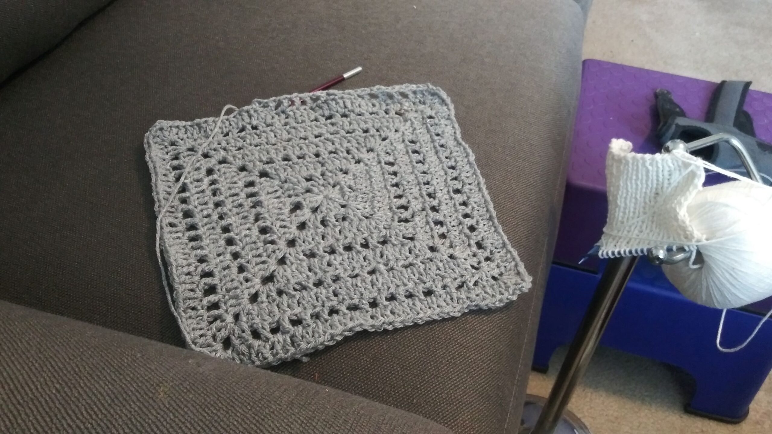 Regardless, I went out and purchased some Caron Skinny Cakes because the tank is a yarn eater. I’m on the second of four.