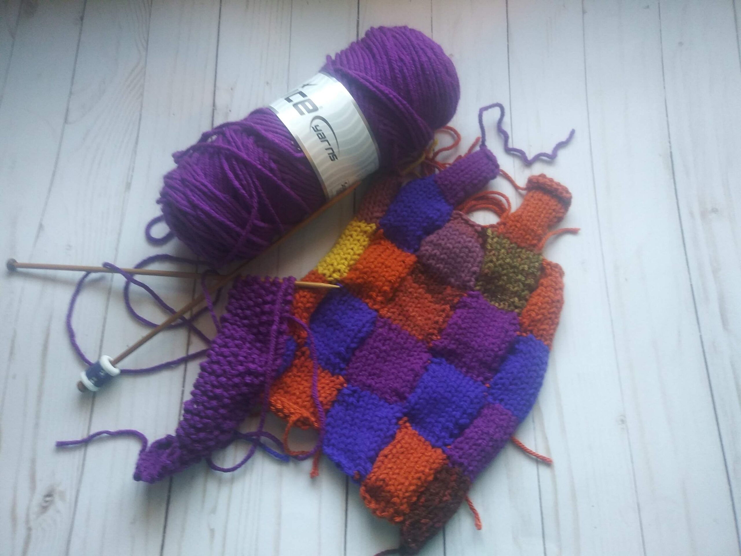 It does look patchwork but it’s supposed to be like discs and though I knit discs, they look more like squares. That’s not minor. The discs look cute.I think it’s the way I sewed them together..