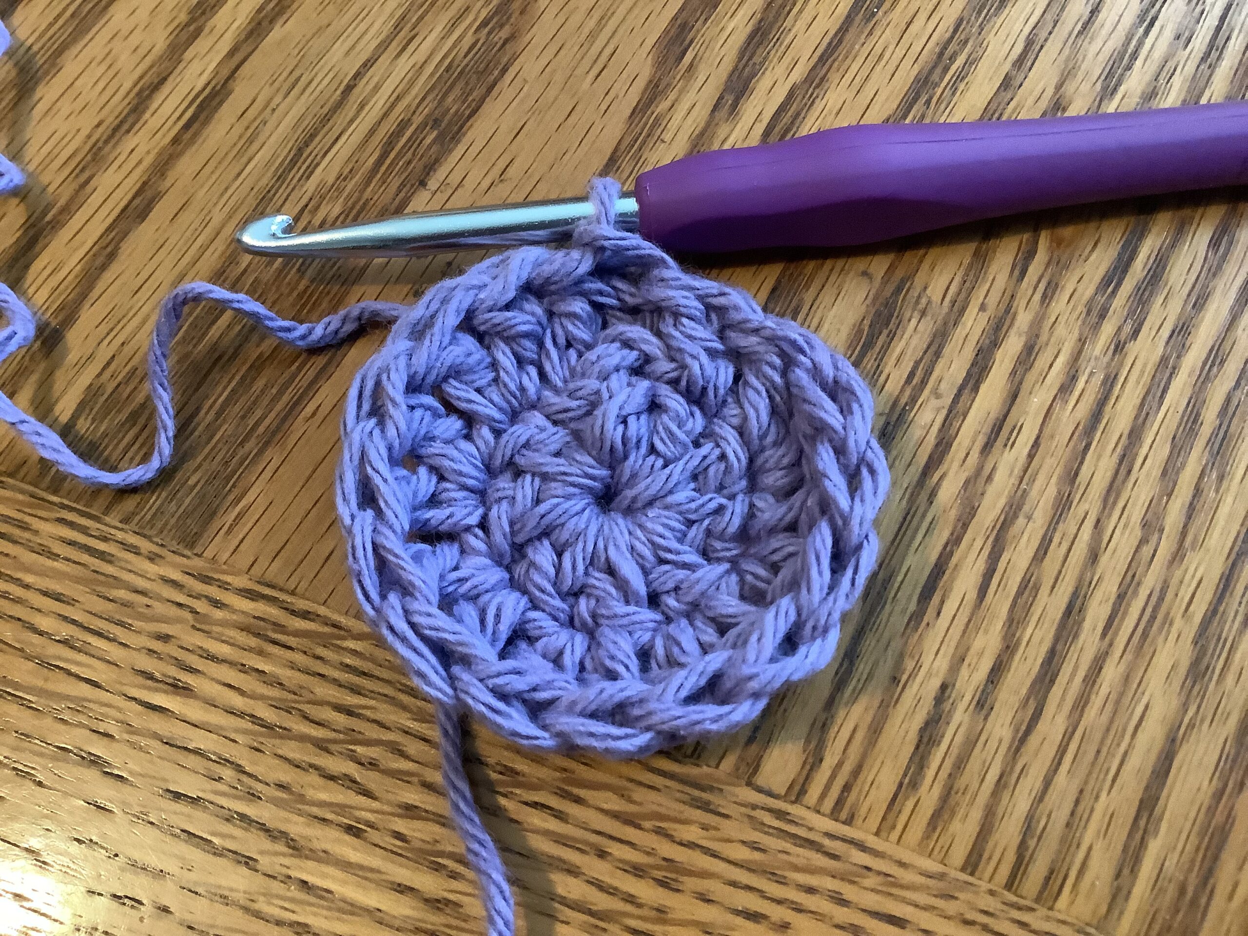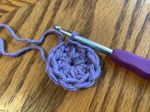Create a magic loop and place 8 dc in the circle. Sl to join, ch 2